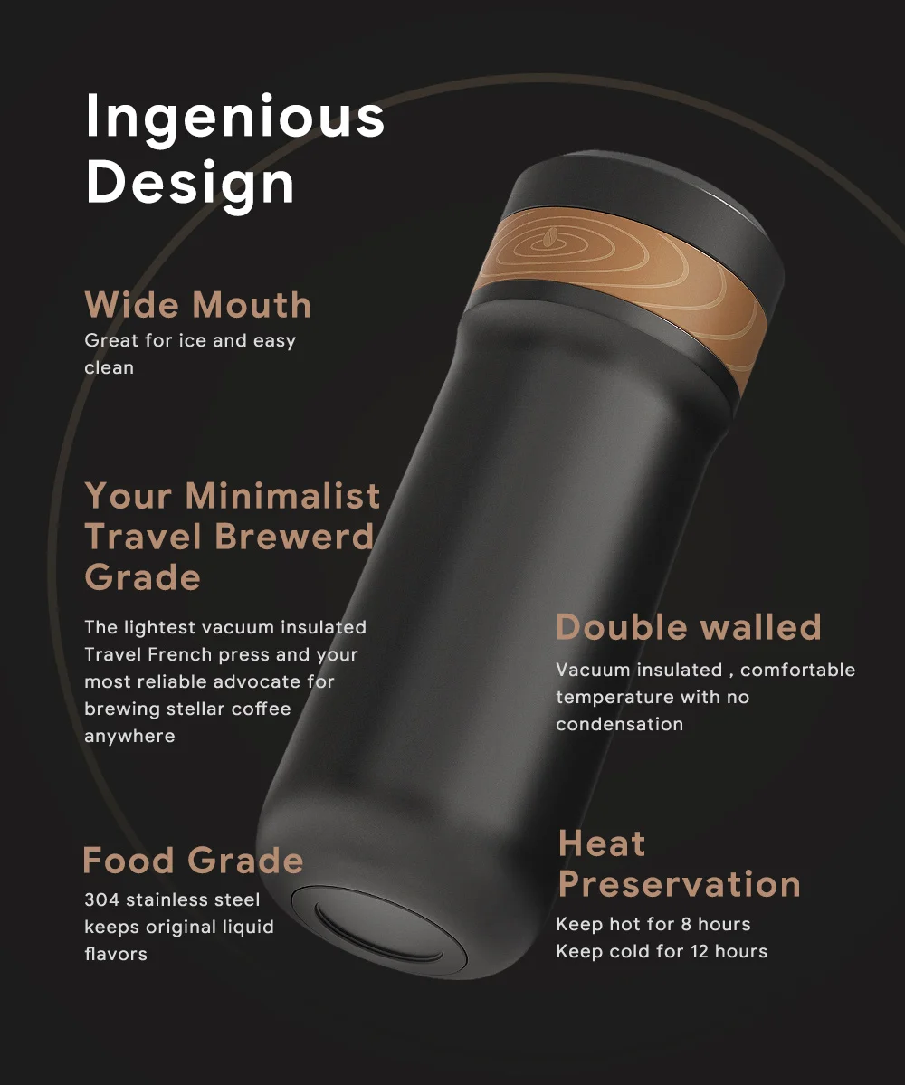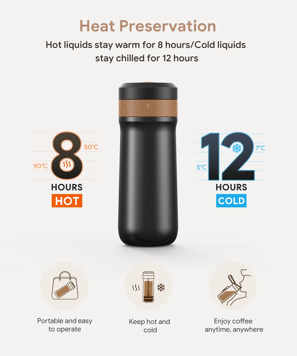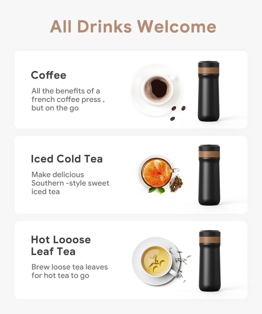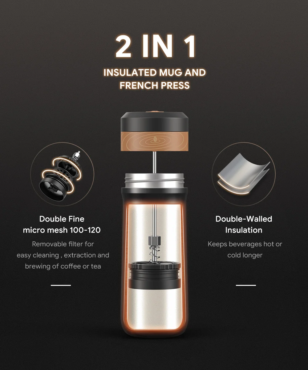 Portable Coffee Maker Stainless Steel Insulated Coffee Press Car Travel French Press Tea Maker Coffee Pot Outdoor Coffee Mug Cup